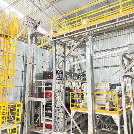 Two parallel lines have been installed in this facility. One line is dedicated to lentil and faba bean splitting, while the other handles faba bean cleaning and protein extraction.